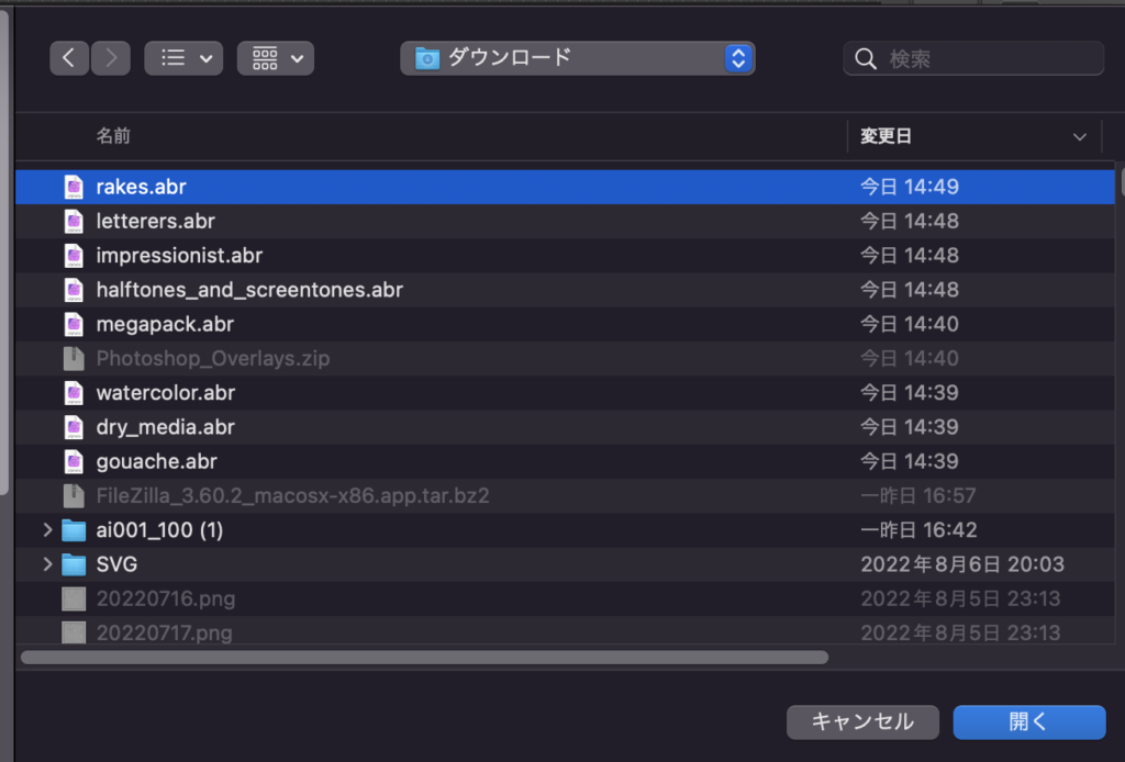 そして読み込みたいブラシファイルを選択し、開くを押します。